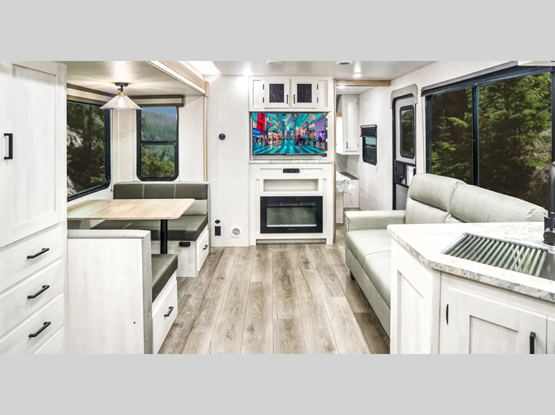 Sleeps 7 Slides 1 Length 33 ft 9 in Ext Width 8 ft Ext Height 11 ft 2 in Hitch Weight 880 lbs GVWR 9680 lbs Dry Weight 7628 lbs Cargo Capacity 2052 lbs Fresh Water Capacity 53 gals Grey Water Capacity 60 gals Black Water Capacity 30 gals Furnace BTU 35000 btu Number Of Bunks 2 Available Beds Queen Refrigerator Type 12V Residential Inspired Cooktop Burners 2 Number of Awnings 1 Water Heater Type On Demand Tankless AC BTU 15000 btu TV Info LED Smart TV Awning Info 21' Power Axle Count 2 Shower Type Standard Similar Floorplans