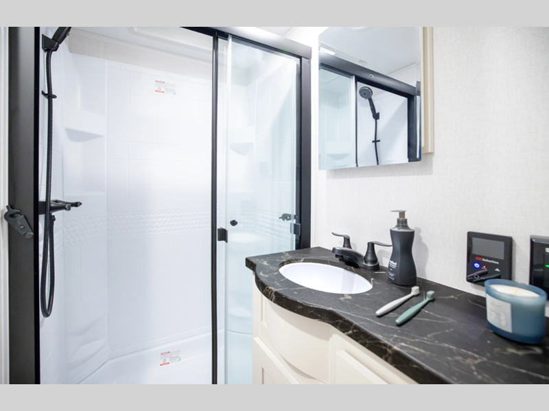 - Large Shower w/ Retractable Shower Door & Skylight