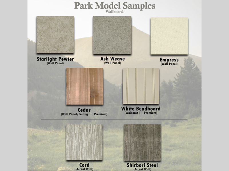 Sleeps 6 Interior Color Graphite, Onyx, Pebble, Pewter, Rawhide, Seaport Exterior Color Pebble Clay, Cypress, Sand, Linen, Sterling Gray Furnace BTU 40000 btu Available Beds Queen Refrigerator Size 17.5 cu ft Cooktop Burners 4 Water Heater Capacity 20 gal Water Heater Type Electric AC BTU 5000 btu Shower Type Tub/Shower Combo Similar Floorplans